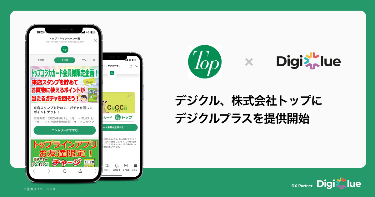 株式会社デジクル(本社:東京都港区、代表取締役:今井悠介、以下デジクル)は、スーパーマーケット「トップ」「トップパルケ」「トップフレッシュマーケット」「ニューヤヒロ」等を展開する株式会社トップ(本社:東京都世田谷区、以下トップ)に対し、2025年9月より「デジクル商品予約」と「デジクルプラス」の提供を開始いたしました。